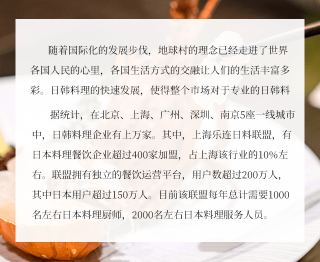 日韩料理技术人才。